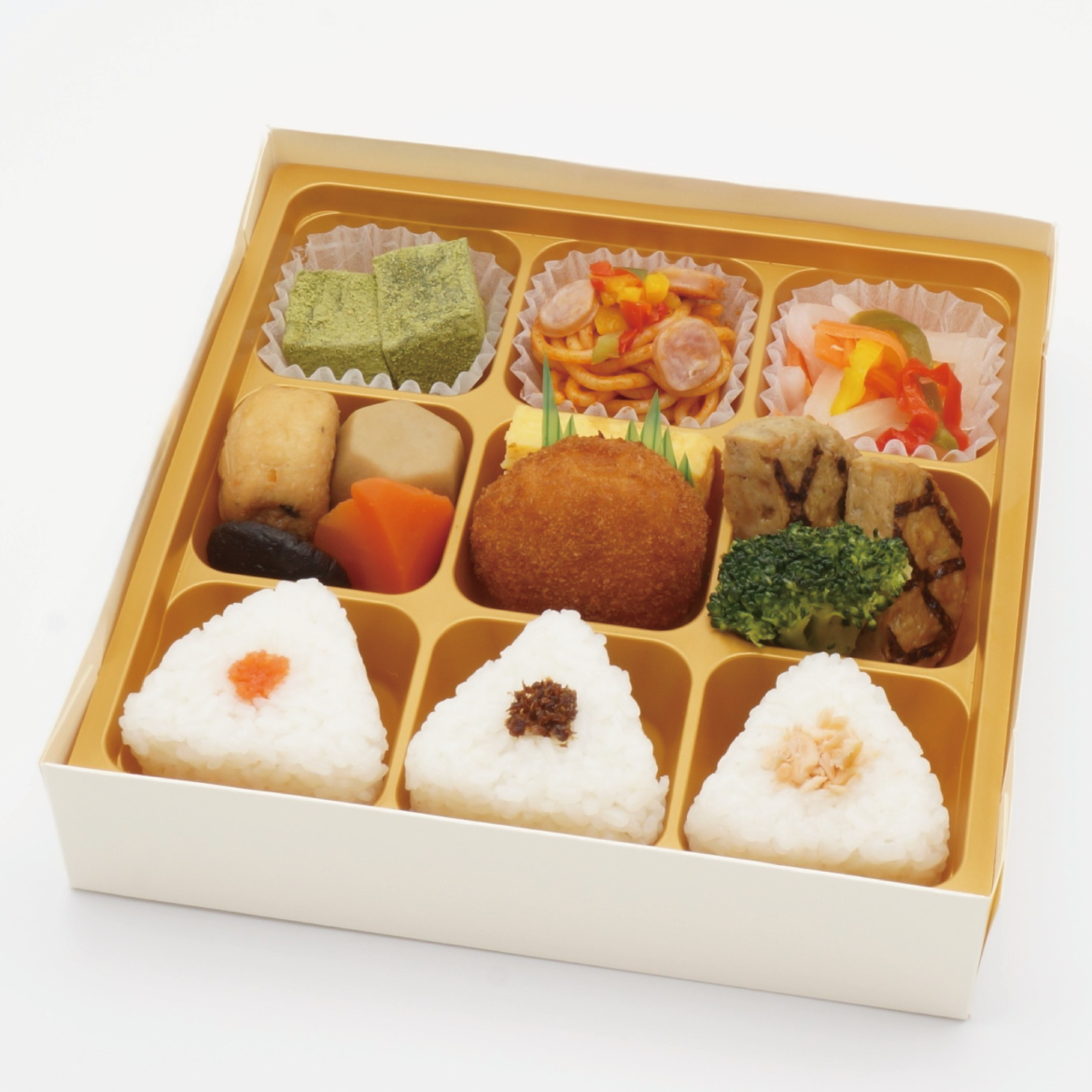 【幕の内折詰】ここのえ1,296円(税込)ハンバーグやコーンクリームコロッケ、炊き合わせやデザートのわらび餅など和洋の味わいを彩り豊かに詰め合わせた九つの幸せ。満足感あふれる折詰です。