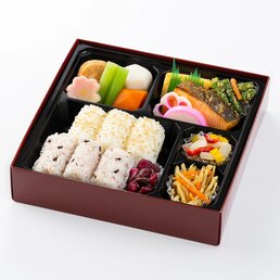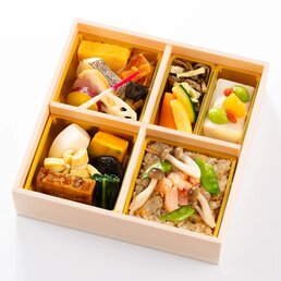 容器回収商品【幕の内お重】飛鳥(あすか)1,944円(税込)さっぱりとした味わいの柚庵焼きで仕上げたサーモンと海老の大葉揚げが入った幕の内お重です。