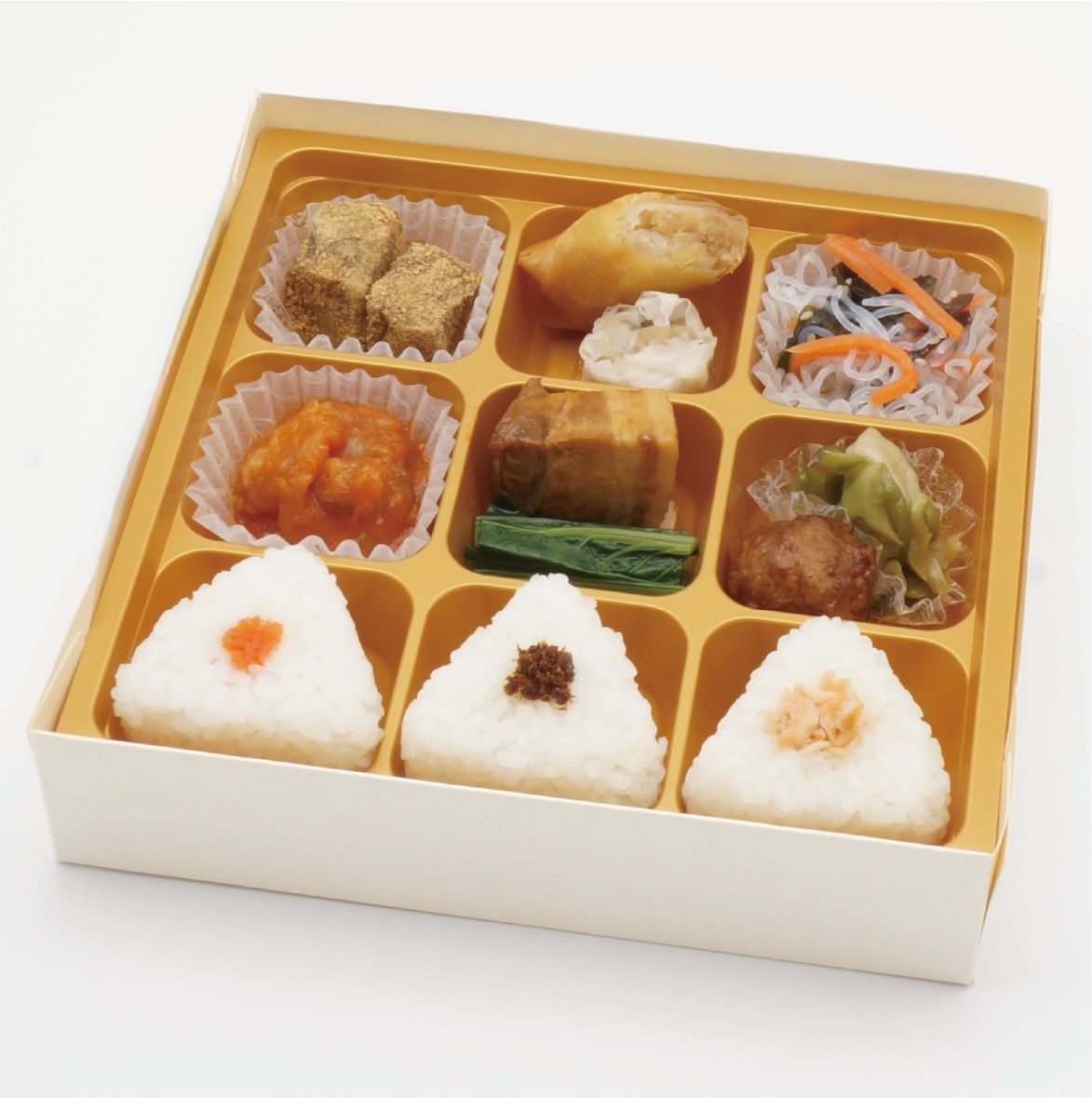 【幕の内折詰】まいひめ1,566円(税込)海老チリや豚の角煮、春巻きなど多彩な中華の味わいが楽しめる折詰です。